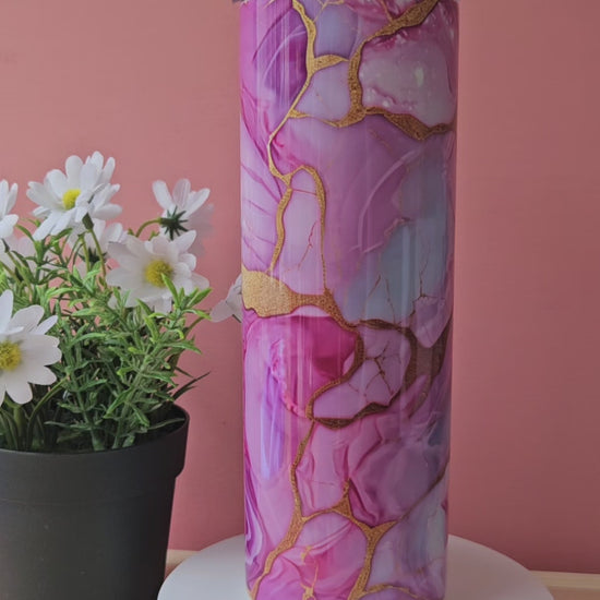 This tumbler combines a generous capacity with a sophisticated glossy finish, offering both functionality and aesthetic appeal.